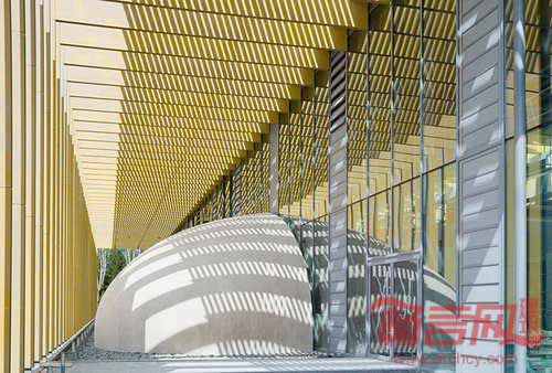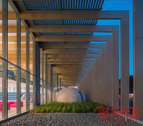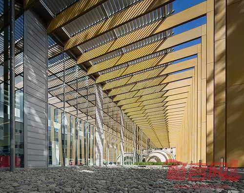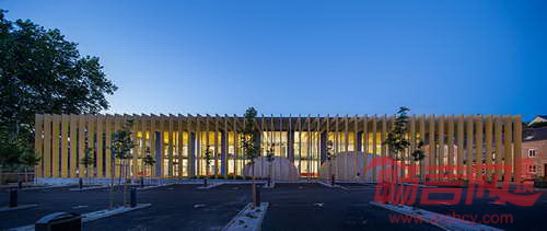 OPUS 5建筑事务所设计了位于法国西部蓬蒂维(Pontivy)的媒体图书馆项目。建筑有三个朝向,提供了不同的视野环境。作为远离都市喧嚣之地,图书馆为读者提供了祥和安宁的阅读环境,读者可以独自阅读,或者参加团体活动。建筑包含三个层次,自然光照照射进各个区域,以别致的光影为空间增添了生趣。最外层围护结构是钢制叶片,不仅模糊了室内外界限,还为读者带来安全宁静的感受。向内一层是玻璃立方体,包裹了大厅和附近的阅览区,最内层是不透明结构,内部是作为建筑“宝库”的储存室。