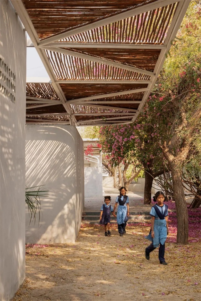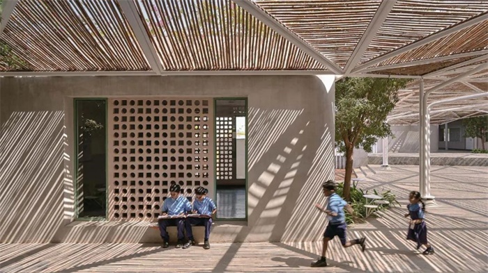 Talaricheruvu乡村校园是利用场地废弃物、可再生材料和高技能劳动力来体现的。这座已有15年左右历史的两层L形建筑,保存还很完好,所以它的钢筋混凝土结构得以保留。然而,为了改进和扩展其布局和系统,需要进行大量修改,浴室位于两英亩场地的周边,很难到达。该建筑的16间教室太大,规划不善,需要自然采光和通风。而且,由于该地区阳光强烈、炎热,缺乏遮荫阻碍了户外活动。