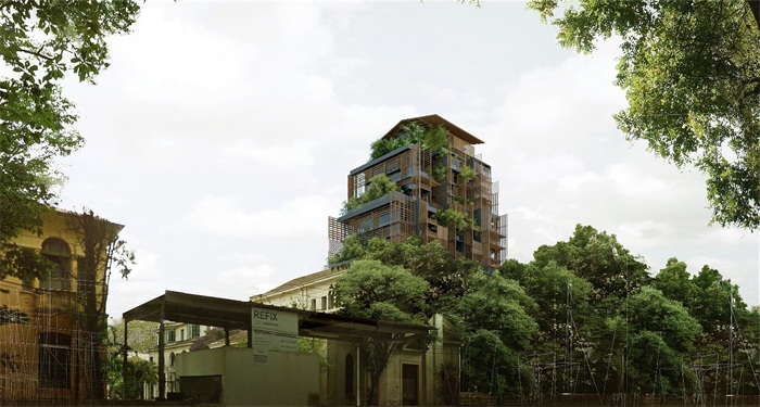 “遗产”首先通过一种建筑语汇来体现,这种语汇融合了当地茂盛的植被。让·努维尔的这座塔楼被构想为一座“景观建筑”,借鉴了该地区丰富的植物生态。鲜花、树木和绿植覆盖于公共与私人空间、露台及屋顶。