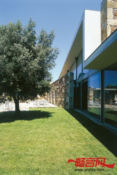 横膈膜、玻璃窗让人们能看到外面的栓皮栎和橄榄树,也将室内带入了室外。
