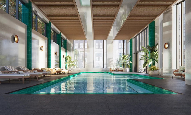 Gang工作室设计了位于布鲁克林Hoyt 11的57层住宅大厦。这座高层建筑高度达189米,下方是裙楼,顶层有私人花园。项目包含481套豪华公寓,面积从开间到四室不等,另外有5.5万平方英尺的室内外休闲设施。室内部分由Michaelis Boyd公司完成。