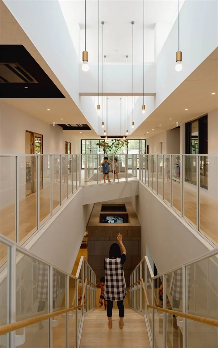 为了激发孩子们创造各式各样的游戏和学习,内部环境特意设计了各种各样的空间和装置。不太方便在室外活动的积雪时期,室内宽阔的游戏室和和拥有环游性的走廊能够充分确保孩子们的活动量。孩子们在美工空间和绘本空间能够尽情创作和学习。