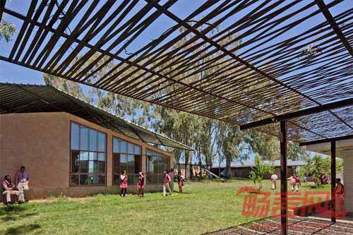 最新项目是Ithuba科学中心,包含两个生物和化学教室、多功能大厅、必要的支持设施,项目设计人员是来自德国亚琛RWTH大学的大学生。设计概念采取常规矩形占地平面,设置一个中央公共走廊,使折叠屋顶下方变成两栋具有棱角的建筑物。浇筑混凝土上方建造了一个钢框架结构,注入稻草包和粘土混合物,这种德国传统工艺能创造高度保温的巨大墙体。