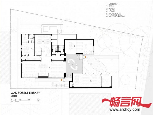 此次工程最主要的就是对图书馆进行扩建,即在原馆的东边增建一个成年及青少年翼楼,并在这里新设计一个入口。此外,还要在大橡树和松树下面建造一个室外阅读区。南面几乎都是玻璃幕墙,这样就会让儿童阅览室有充足的阳光,而旧图书馆那一部分则会被翻修成为办公室、洗手间、机房和员工区域。