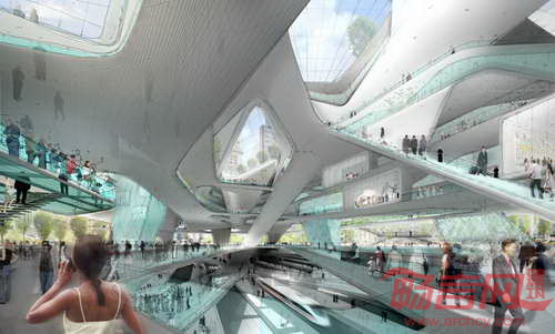 快速交通与火车铁轨均位于一层区域,其他区域的交通量逐步减少,车站顶端是屋顶花园,乘客可以休息并欣赏城市风光。除了交通相关功能,车站还为一系列参观者服务,受众包括通勤人员、公司职员、店员、文艺工作者、城市探索者等等。