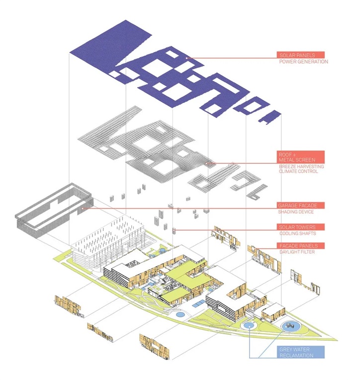 Brooks + Scarpa为沙特阿拉伯利雅得的环境、水和农业部(MEWA)设计了一个新的综合楼。这个占地120万平方英尺的综合大楼包括七座建筑和一个太阳能系统,该系统将产生整个建筑群75%的能源使用。