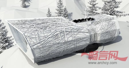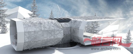 法国建筑事务所Stephan Ricci AKA Architerroriste设计了一座概念性的房子,其形状看起来像是一对被鸟巢包裹起来的望远镜。