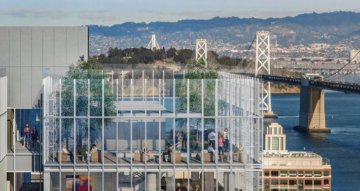 伦佐皮亚诺计划在旧金山设计一座36层大厦。这一新建建筑位于城市跨湾区,这一地区正在经历重要的更新发展,诺曼福斯特的新建泛海中心也将位于该区。本项目是一个混合功能大楼,包含69套住宅,255个客房的豪华酒店,会议室,舞厅,水疗馆,健身房和一层餐厅。
