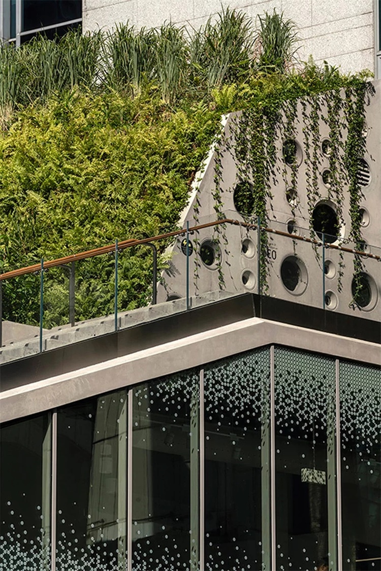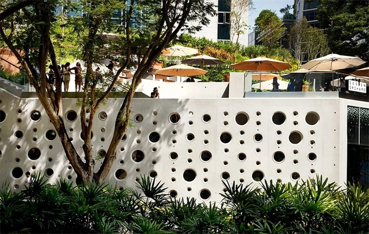 和其他WOHA作品相同,设计果园是城市中心的绿洲。为了给公共空间带来绿色,设计师营造了屋顶空间,具有层级的城市露天剧场、设有天棚的口袋公园一侧的舞台。协作空间为年轻设计师提供了从概念到生产的培育环境,可以在一层零售区推广其产品,并在屋顶花园和剧场用时尚的外观展示其作品。