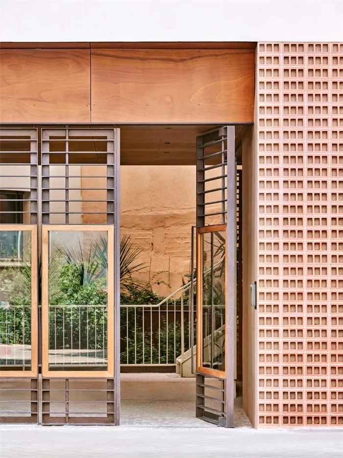 该建筑高 5 至 8 层,有 4 个庭院紧邻现有建筑的党墙庭院。这一项目决定产生了大面积的内部庭院,如果与相邻建筑的庭院相加,其面积将增加一倍。每个庭院都是一个独立的入口,有自己的外部通道和垂直交流核心,尽管它们都集中在停车场一层。