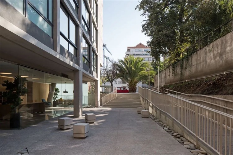 该项目由 MMBB 和项目所在地智利圣地亚哥的 TAA 合作完成。该项目建在 Providencia 社区,是一个高密度的建筑,减少了通道空间使每层有四套公寓。