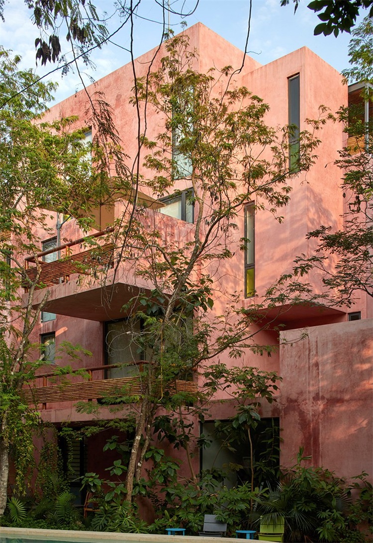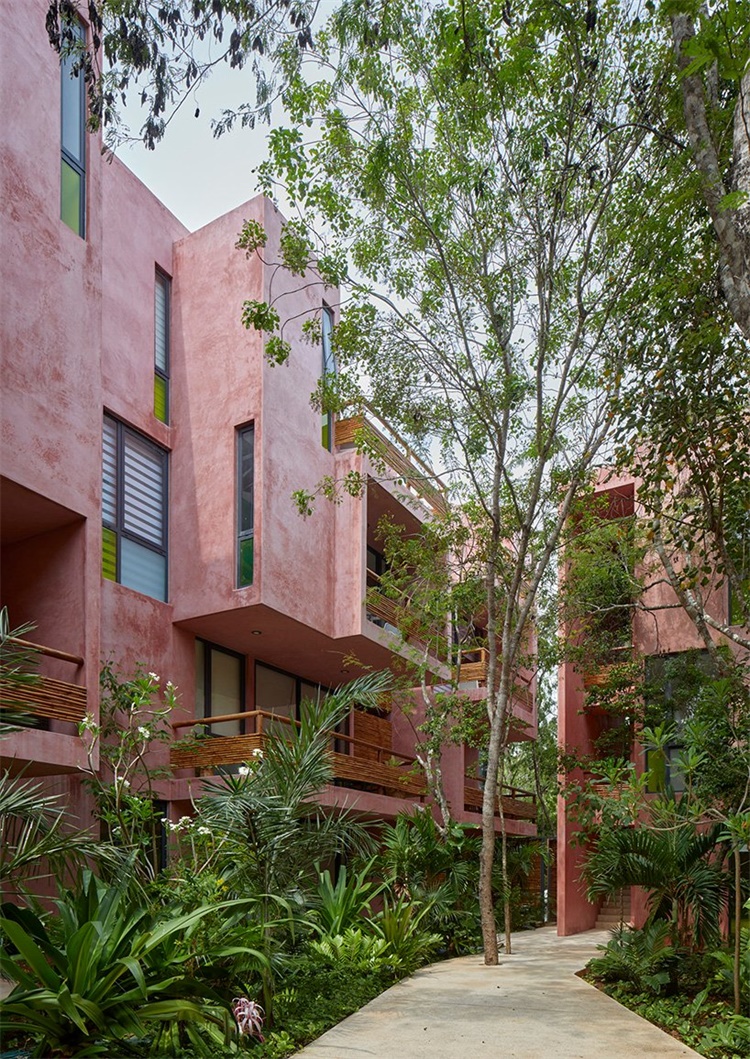 项目位于墨西哥Yucatan半岛、加勒比海边的Tulum,旨在营造具有居民社区意识、中等密度的公寓建筑。项目由Reyes Rios+Larrain Arquitectos和Gabriel Konzevik共同设计,包括38套两居室、三居室公寓,以及各种临时会议场所。