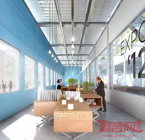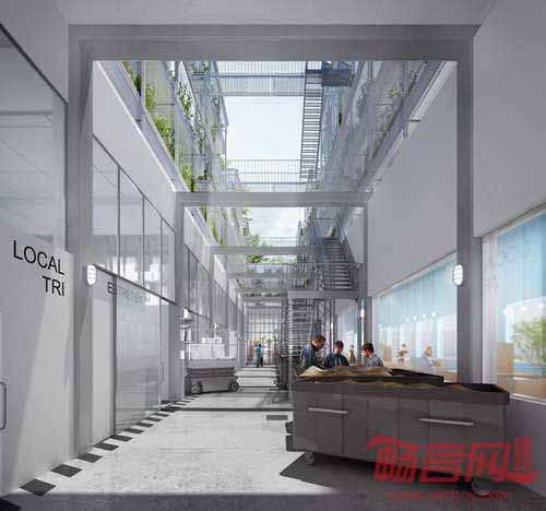 法国SOA及Holdup两家设计事务所联手设计了一个文化与农业结合的项目,音乐、教育、艺术活动在城市垂直农场的自然花卉中展开。项目位于Neil军营原址内,一层包括展览空间、剧场、画廊服务区,其上是叠加的轻质钢模块结构,容纳了”盘桓“在项目上方的种植文化。