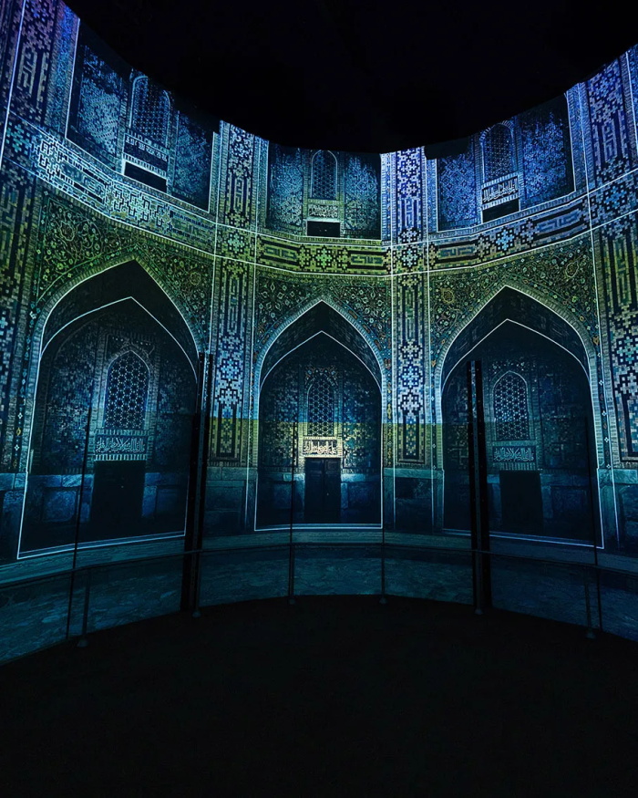 展馆设计体现了乌兹别克斯坦传统工艺精神,以现代语言和可持续建筑方式重新诠释。双层结构展馆占地1272平方米,展陈空间约860平方米,呈现出乌兹别克地貌的典型意象。展馆基座由砖与黏土构成,象征土地、根基与文化遗产。
