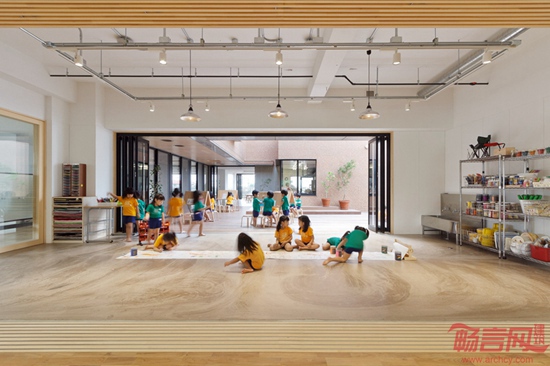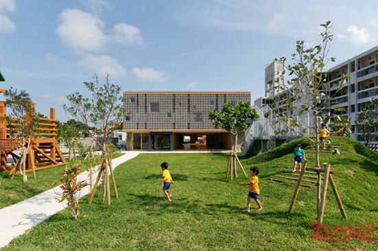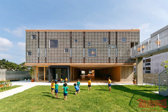 花园幼儿园位于距离东京2000公里的宫古岛上,由HIBINOSEKKEI and youji no shiro设计。建筑设计受其所在区域的次热带海洋气候以及周边环境影响。设计宗旨是让儿童处于浸入式的户外体验,积极参与创造性活动。一层空旷开敞,提供舒适的自然通风。幼儿园设有庭院露台,便于孩子玩耍、学习、户外就餐。