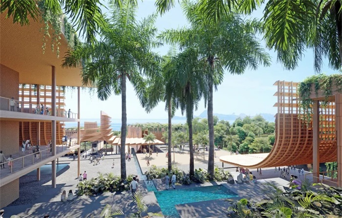 扎哈·哈迪德建筑事务所的这一设计以可持续发展为核心,旨在使该项目成为法属波利尼西亚的一个新的国家地标以及首要目的地。在追求先进、可持续的同时,设计尊重并回应了该地的文化价值和岛屿的自然力量。