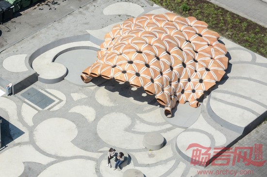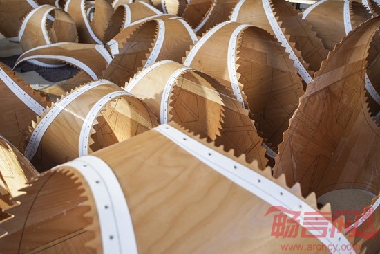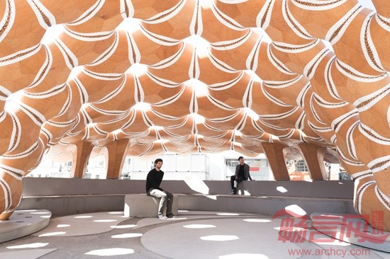德国斯图加特大学的运算化设计学院(ICD)和建筑结构与结构设计学院(ITKE)合作完成了一座新亭子的设计和制作,展现了壳状木片的自动化纺织加工工艺。