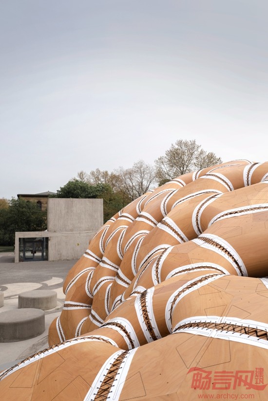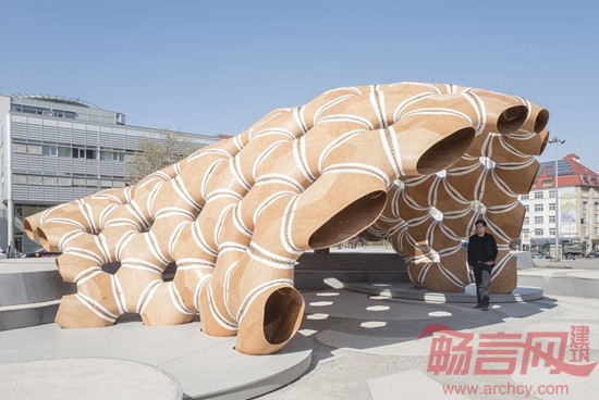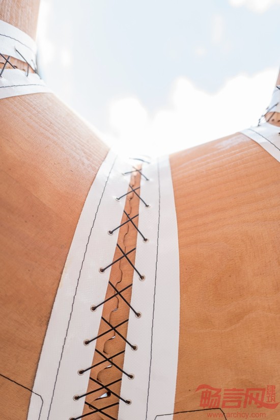 这座亭子标志着首次在建筑领域使用工业化缝制的木质材料,体现了计算机运算化设计、仿真和加工工艺在建筑领域的巨大潜力。该项目由一群跨学科的学生和研究人员完成,其中包括建筑师、工程师、生物学家和古生物学家。