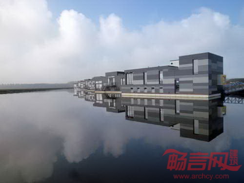 项目名为“漂浮在Lelystad”,包含八座水上漂浮住宅。业主童年都在水面上度过,他们一直梦想拥有漂浮住宅。这些业主组成了一个集体,委托Attika建筑事务所设计八座各不相同、和谐皮排的住宅。所在城市Lelystad海拔低于海平面4.8米,项目场地位于河沟边。设计师根据业主同的要求和期盼,赋予住宅不同的尺寸、颜色和形状。