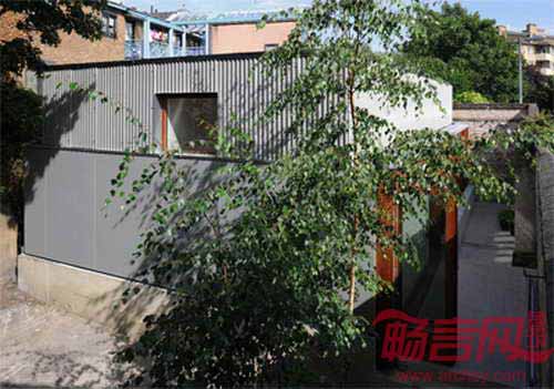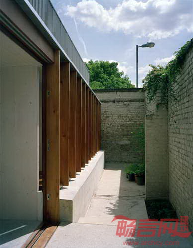房屋面积不大,仅有75平米,低调地坐落在伦敦Deptford一处旧砖墙之中。院墙内原是一个旧馆,8年前建筑师Hugh Strange看出了这里的潜力,打算将其建成自己和家人的住宅。建筑师当时的住所后院紧靠着场地的北侧,而场地处于废弃状态。其后,建筑师从一个住宅机构处买下了场地,将临近繁华街道的场地打造成办公室以及一层的居住区域。
