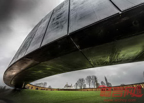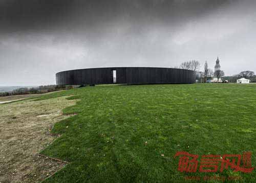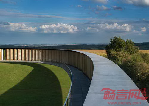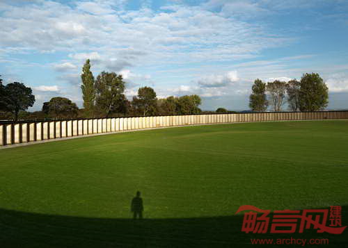 巴黎建筑师Philippe Prost设计了法国北部村庄Ablain Saint Nazaire的Notre Dame de Lorette纪念馆。项目场地上有世界最大规模的法国军事公墓,旨在纪念第一次世界大战死难者。公墓埋葬了四万名死者,祭奠了来自一战、二战、东南亚战争和北非冲突的遇难者。纪念馆呈现出328米的椭圆形混凝土结构,由预制混凝土板构成。