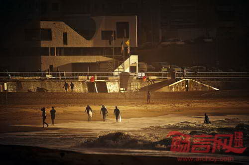 澳大利亚Durbach Block Jaggers工作室同建筑师Peter Colquhoun合作,共同设计了位于悉尼的北邦迪冲浪救生中心。建筑直接同海滩相连,设计歌颂了救生员的英雄主义,凸显了海滩生活的乐趣主义。项目坐落于国家保护场地上,原有建筑同周边环境脱节。新建建行组同工种展开连贯的对话,通透的边角使室内区域向外部开敞。建筑形式统一而有细微变化,呼应了和缓的海湾和两个海岬。建筑体现了对于场地自然美景的尊重,不仅外观且内部优美和谐,其庭院包含两大主要功能区。一条宽阔的走廊和户外楼梯方便救生员清楚地观察海滩上人们的活动,同时提供朝街道和码头直接的路线。