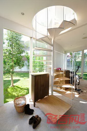 日本Velocity建筑工作室设计了位于爱知丰川市的一栋白色住宅。建筑具有压扁的钻石形状,一方面最大程度扩展了空间,另一方面不对周围邻居的视野造成不利影响。项目名为“城市森林住宅”,住宅在矩形场地上延伸,狭小的花园空间内沿住宅墙壁栽种了绿树。建筑师表示,“场地三个侧面均与周边住宅相邻,而这些住宅均有窗户朝向场地。为了回应场地特点,我们营造出森林般的户外环境,包围了房屋的四角,如同池塘中的涟漪。”此外,建筑师还将建筑的曲线形状比喻成树木的有机生长过程。他透露,“植物依照外部环境和自身条件,自主选择在何处展开枝叶。我们希望能设计出展示同样品质的建筑。”