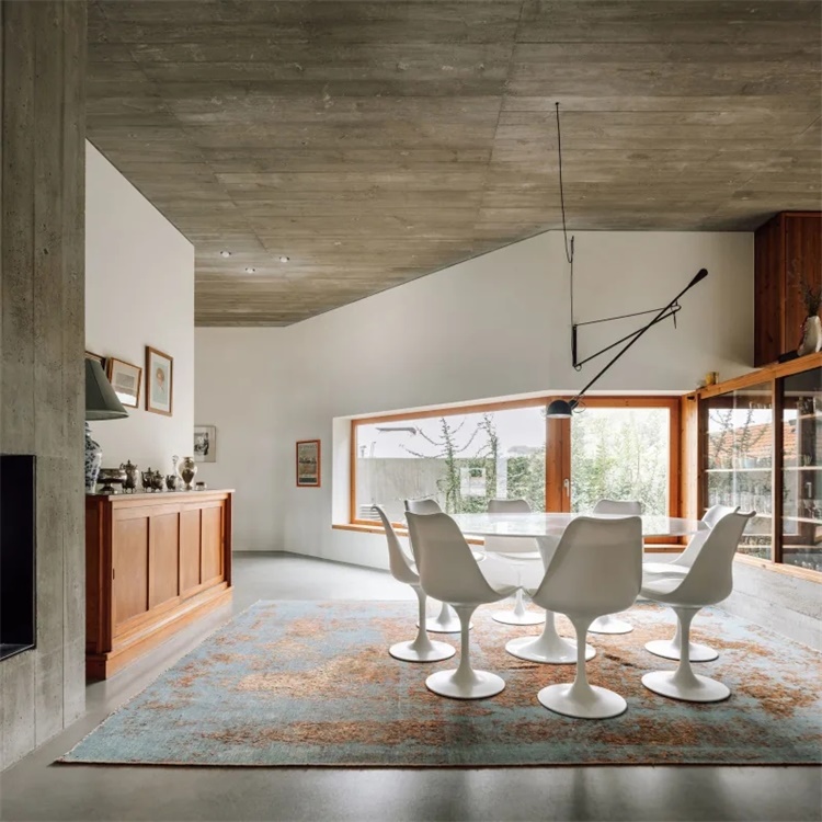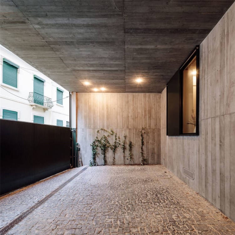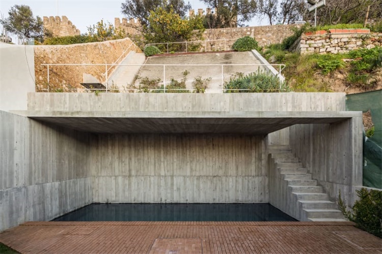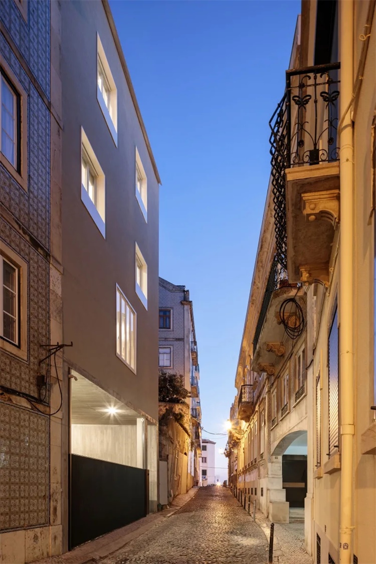 Rua Costa do Castelo路环绕Castelo de Sao Jorge山,高度明显低于山墙,因此面向道路的建筑物通常在其上层后面设有绿化。花园为坡面布局,覆盖了建筑不同深度的空间。工程包括建造全新的房屋,地面以上五层,最深一层从现有的街道位置进行缩退。建筑独特之处在于其双重性质。一到四层与历史建筑平齐,第五层平面改造成城市别墅,形态上不受限制,并使其他分隔开放空间更加有趣。从包含街道车库的有盖凉廊中,可以看出剖面空间布局和次序的复杂性。从门厅开始,住户可以进入书房,然后是卧室,最后是房子的社交区域,例如花园,厨房、餐厅,休息室通向游泳池。