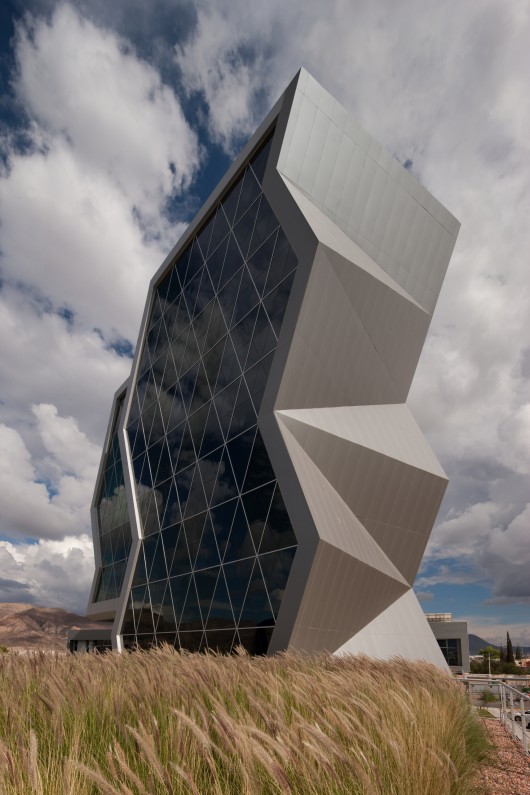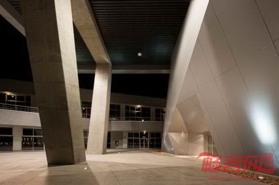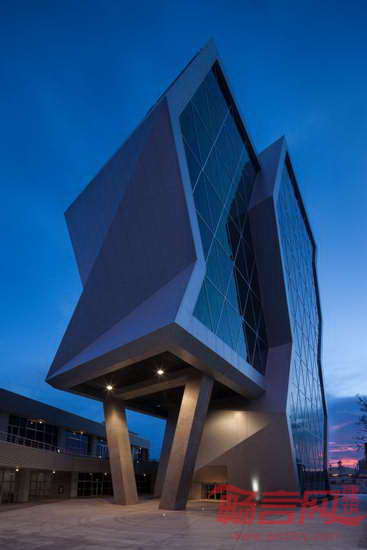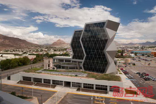 Grupo ARKHOS建筑事务所完成了位于墨西哥Chihuahua的科技创新园大楼。该项目是一座科研创新中心,为航空学和自动化工程专业服务。建筑应用了前沿创新式设计理念,采用了可持续性设计原则,旨在赢得LEED金质认证。建筑外立面运用航天学和超级跑车中的“隐身”科技。同时,建筑拥有墨西哥最大的绿色屋面,设在实验楼顶部的屋面面积达到2500平米。屋面绿化的灌溉用水来自同一座建筑经过处理的污水。