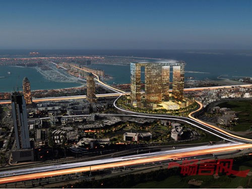 俯瞰棕榈人工岛的巨石建筑于2008年初开始建设。该项目坐落在城市中心区,2013年竣工后将为9000名居住者提供豪华公寓和空中阁楼,繁华的商业中心可为12000人提供服务。基于24小时生活方式的理念,这座获得LEED金标级认证的超级国际大都会设置了行人专用区和文化空间,其中包括可以容纳2000人的表演艺术剧院。包括贝拉吉奥酒店、巴卡拉特酒店和梅金殿酒店在内的6家五星级酒店为游客提供了1400间客房。这项综合性的城市规划将使该项目成为城中城。