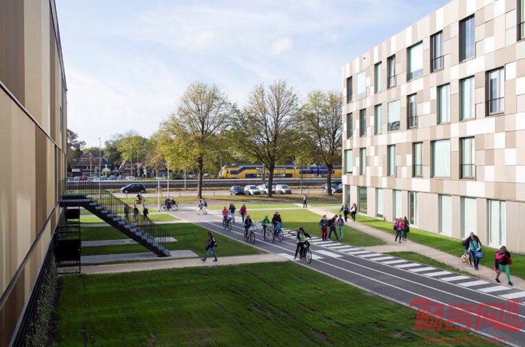 Atelier Pro事务所设计了荷兰Ezinge教育园区。项目面积30062平米,坐落于Meppel,毗邻Ezinge住宅区,介于铁路和运动场之间。建筑呈现出古铜色、伸长的外观,包含无所中学和运动场。新建的Dahliastraat道路将学校同居民区分隔开。尽管学校教室功能独立,但通过公共工坊相互关联,后者面朝马路,学生可以将其作品对外展现。