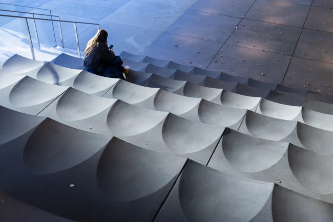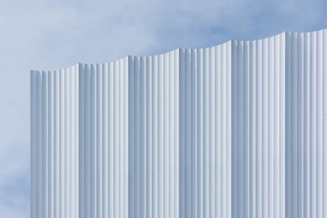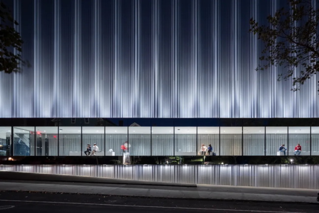 主体建筑被一层挤压成型的铝制防雨幕墙所包裹,这层幕墙呈现出类似分形结构的凹槽几何图案。凹槽的多重尺度及其浅浮雕效果,是对校园所处的普罗维登斯这座城市以砖砌和木质外墙为主的建筑风貌的巧妙致敬。