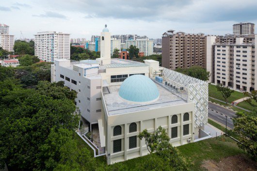 Al-Ansar清真寺介于Bedok水库和东海岸公园之间,是一家社区清真寺。设计注重营造开放包容的氛围,迎接信徒和社区居民。清真寺体现了新旧融合的特点。光寺和祈祷厅穹顶是从前存留的部分,它们和新建的漂浮裙楼相互融合,后者容纳了教室和礼堂。礼堂可容纳300人,用于祈祷空间的扩展,并可举办婚礼等活动。