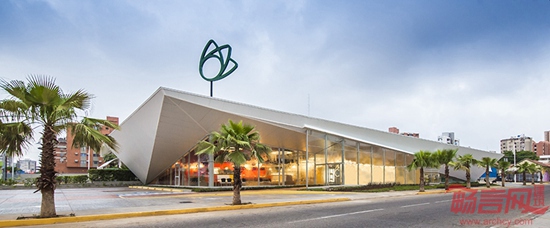 De Candido Express超市毗邻Maracaibo市最为繁忙的街道,项目由NMD Nomadas建筑事务所设计。项目概念旨在显示地域特征,表达成简介、坚定、多样性和持续的特点。建筑设计能够很好地适应未来变化要求,用于不同用途和城市场景。建筑师希望超市具有区别于其他建筑的独特性,其屋面采用了折纸灵感,没有设置支撑墙面。其简洁性和柔软性和日本折纸如出一辙。