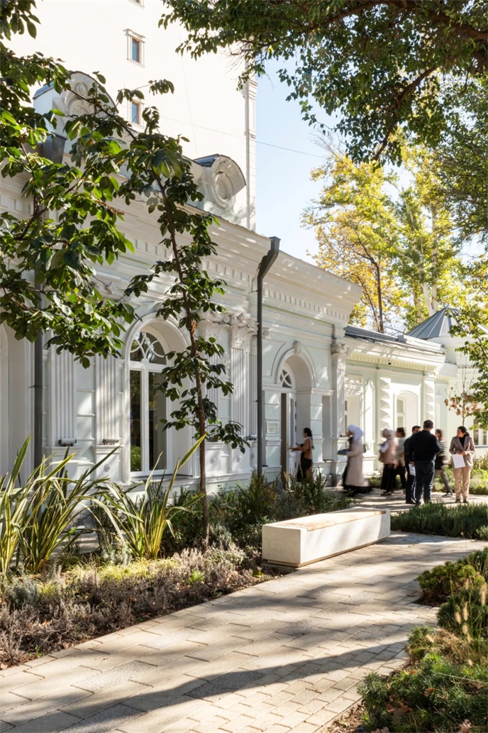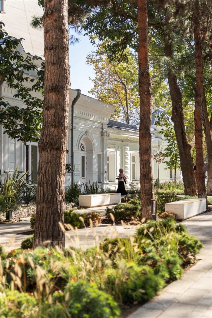 塔什干儿童图书馆项目也采用了这种方法。考虑到历史建筑所带来的诸多限制,设计师同时参与了建筑周边的翻新、室内装饰设计和景观设计。新的功能和场景被巧妙地嵌入到现有建筑中,在“古典”与现代之间找到了平衡。