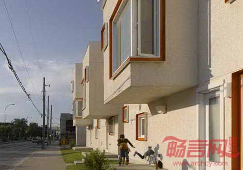 加拿大Winnipeg一个原本仅包含6户单户住宅的建筑被改造成容纳25套保障型公寓。项目的设计方是5468796建筑事务所,项目名为”中央村“,由模块式住宅构成了多样、连贯的微型村落。三层的建筑坐落在步行街道和公共庭院旁边,有助于社区居民的交流,同时也保护了每户的私密性。项目提升了建筑密度,保证了小户型住宅的日照和自然通风,降低了对于环境的影响,倡导了可持续性生活方式。