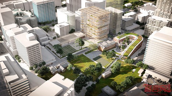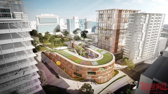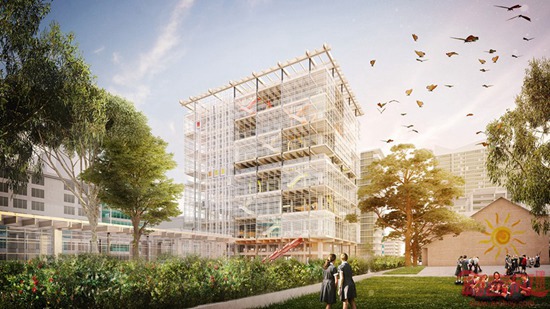 Grimshaw建筑事务所构想了位于澳洲Parramatt郊外的高层学校建筑。项目注重创造创新性学习和融合绿化环境。BVN公司同时参与了该项目,两家公司共同为一所高中提出了一种独特的建筑设计方案。项目共有14层,高度达到66米,高中建筑奖成为澳大利亚首个高层教育设施。项目理念基于创造“学校中的学校”策略,让学生可以跨越不同阶段进行学习。