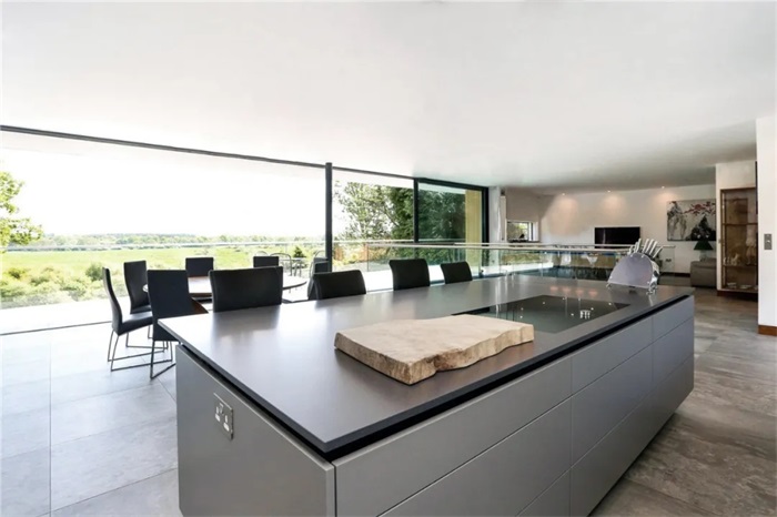 别墅分为三层,最上层突出于斜坡顶部平面。较低的两层随着景观的坡度错落到场地的下方,将用户带到较低的花园和河流。一楼的布局包含大多数必需的开放式起居室,并享有河流壮丽景色。