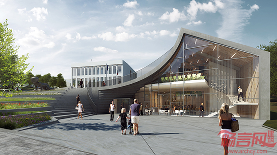 PLUKK意在将该大楼设计成便于周围社区居民活动的公共场所,因此采用了“半景观、半建筑”的设计。项目被分为两部分,公共活动平台之上的部分为市政厅大楼,而另一部分则为社区中心。