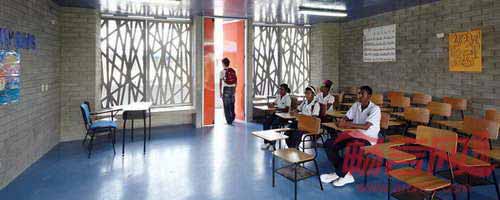 Flor del Campo教育中心项目提供了多彩、明亮、宁静的流动建筑形式,包含的透明化区域将户外空间和建筑室内部分连接起来。