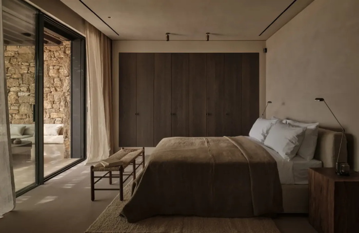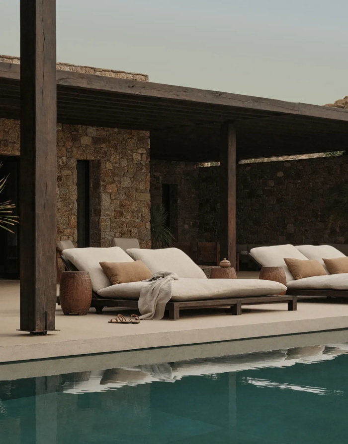 最近十年,希腊出了许多疗愈系度假酒店,Casa Cook 就是最受关注的酒店品牌之一。En Kyanó 是米科诺斯岛(Mykonos)2024年新开业的一家度假别墅酒店。项目由D. Sakelariou,M. Seitanidis,Lambs and Lions,Studio MacBride,Annabell Kutucu等著名团队联袂设计。Lambs and Lions、Studio MacBride 与 Annabell Kutucu 也是许多疗愈系酒店、餐厅项目的御用设计团队。