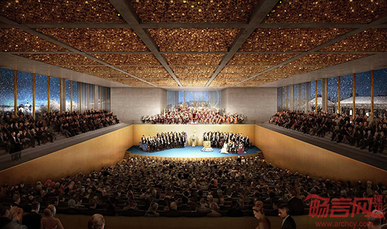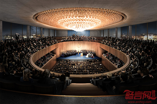 戴卫•奇普菲尔德建筑事务所的这项设计以其“明亮而开阔”的特点受到了评审团的赞美,其玻璃和石材结构传达着一种“尊贵”,并且象征着诺贝尔奖的理想典范。然而,此前在2014年这项设计也受到了瑞典遗产保护者的强烈反对,他们在互联网上发出请愿,反对“明星建筑师在他们的历史遗迹中间建造尖锐的玻璃和钢结构建筑”。