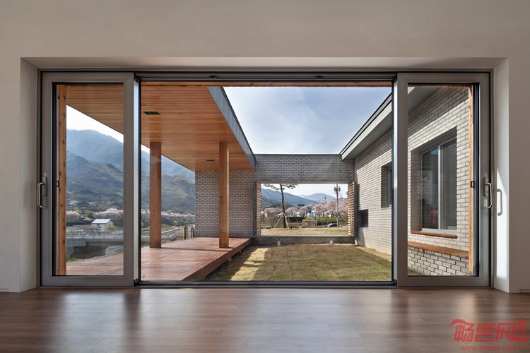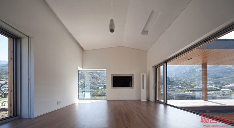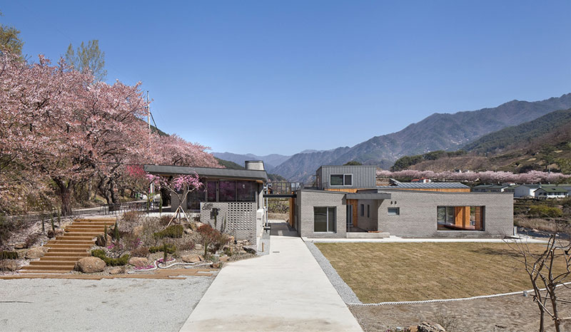 Lee Haan工作室完成了两院住宅与130桥咖啡厅项目。业主是一对年轻夫妇,他们逃离了都市环境,选择在风景如画的Hwagae地区享受宁静生活。两座建筑毗邻的马路通向著名的Ssanggyesa寺庙。场地开放的属性和建筑不同功能要求建筑师考虑设计不同程度的私密性,保证住宅和咖啡厅同环境相融合。