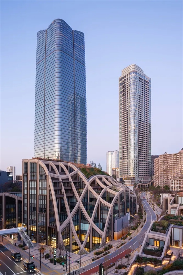 Pelli Clarke & Partners 与日本领先的开发商森大厦合作,为占地 8.1 公顷的麻布台新城设计了城市布局和建筑愿景。设计包括全面的总体规划和三座高层塔楼的建设。麻布台新城被规划为一个现代都市区,在三座高层建筑中整合了住宅、商业和酒店空间,以及绿地、艺术场所、烹饪场所、教育设施、零售店和文化中心。事实上,该项目预计每年将吸引近 3000 万游客,象征着东京城市振兴的前瞻性视角。