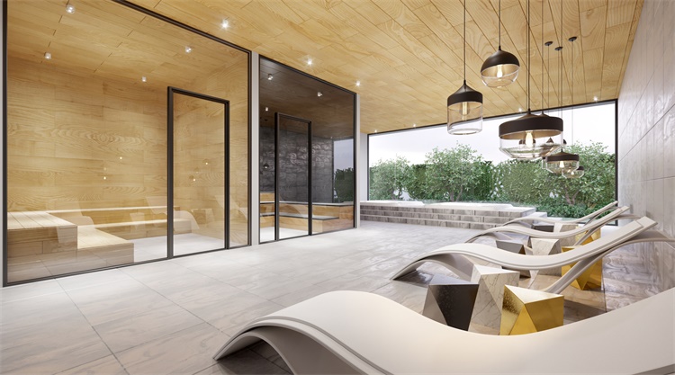 在岩石外表后方,建筑设有宽阔的玻璃墙面和高高的木质百叶窗,打开窗户,可以望见壮观的山景。每座建筑都可通向屋顶游泳池,电梯充足,住户只用和一家邻居共享一部电梯。据效果图,绿化将蔓延到室内,公寓楼大堂也包含覆盖绿植的墙面。