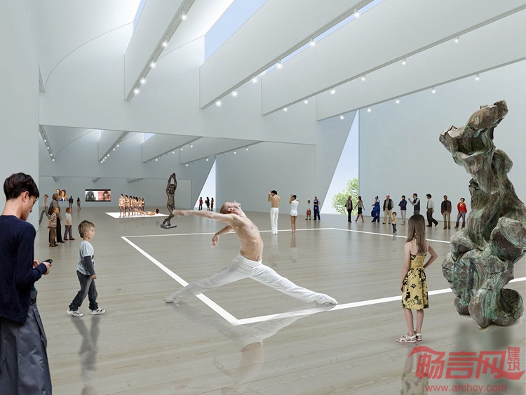 Diller Scofidio + Renfro事务所和伍兹贝格事务所合作方案赢得了澳大利亚阿德莱德新建艺术馆设计竞赛的优胜。项目涵盖“天空艺术馆”、“表演实验室”、“超级大厅”。Renders展示了从屋面悬吊的若干阶梯形白色模型。白色立面在白天时能反射光线,夜晚可以散发出柔和的光芒,游客也可从外部瞥见室内的馆藏艺术品。