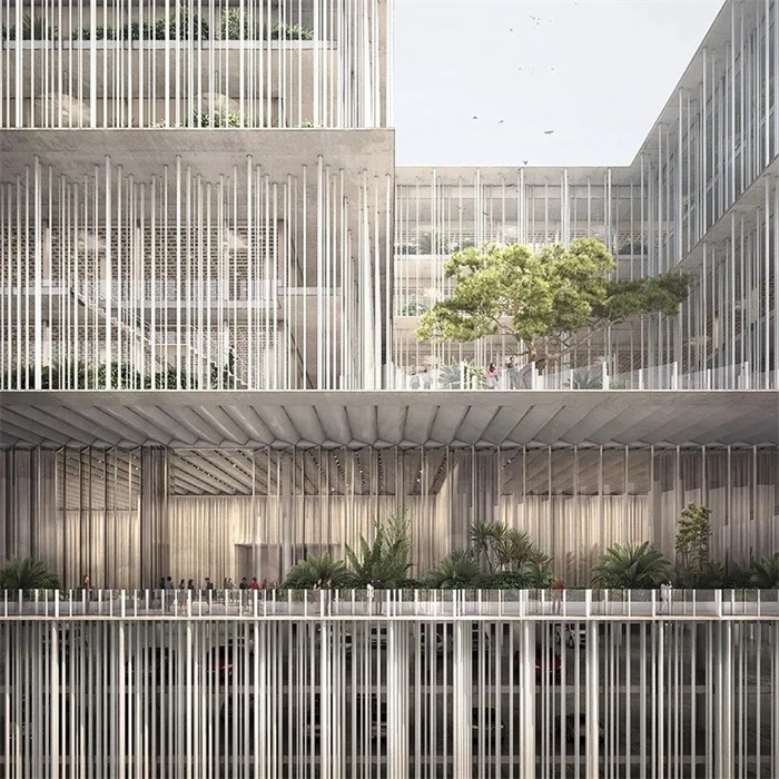 szczepaniak astridge设计的supermax总部尊重社会、文化和环境因素。这座九层的多功能建筑将容纳各种各样的项目,包括研发、销售和营销办公室、金融和银行部门、培训中心、礼堂、报告厅、餐厅、可容纳1000人的大宴会厅、活动空间和停车场。