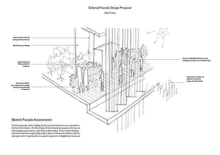 通过其拟议的全球总部需求,设计团队试图通过该建筑表达公司的品牌价值,并建立其作为PPE设备供应的世界领导者地位。该项目将坐落在棕榈油种植园的开发边上,棕榈油的外壳和叶子用于为supermax的关联工厂提供电力。