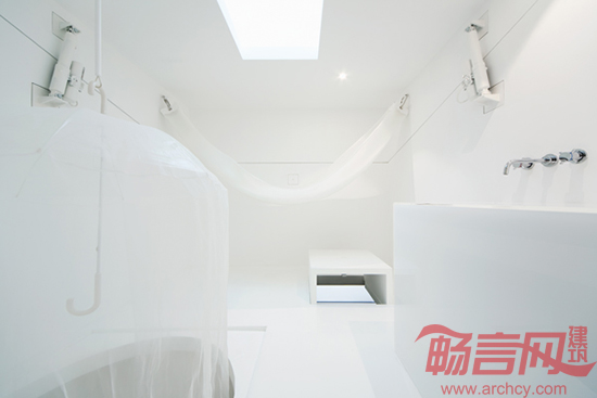 房子容积为27立方米,边长为3米。室内设计体现了日本的传统风格,通过调整,其功能可以在卧室、厨房和起居室三个方面转换。淋浴间与卫生间设计在一起。地板上凸出一张桌子,可以90度旋转,抬高之后使用者可以将双腿放在桌子底下。睡眠空间在吊床下方,居住者也可以在吊床上休息。