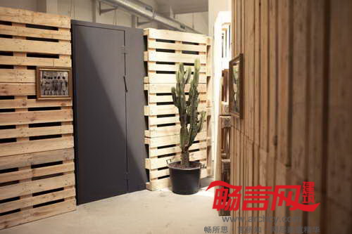 木箱的外表面是粗糙、二次使用的木托盘,遵循了房间的工业特征。然而,木箱的内部却隐藏着玄机——一个温暖安全的空间,配备了古旧家具。